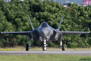 パイロットは外人の方。F-35のテストフライトは、三菱重工やADTW(飛行開発実験団)ではなくロッキードマーチンのテストパイロットが担当されているとか。無線からはネイティブの英語が聞こえます。チェイス機は見当たらず。