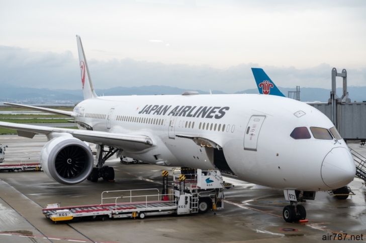 JL69便はJL60便の折り返しなので、機材は往路と同じボーイング787-9です。今回の機材は JA877Jでした。