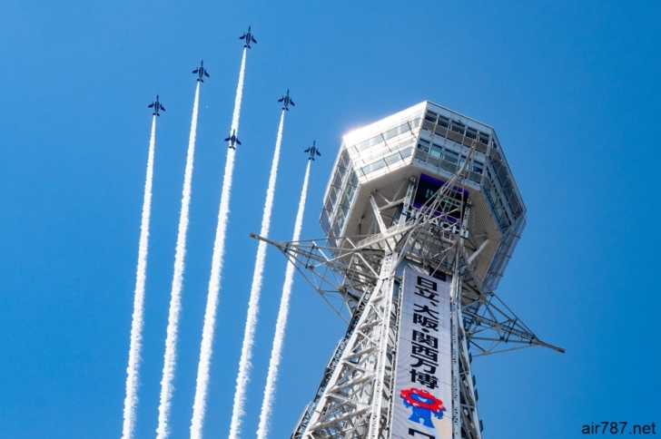 ブルーインパルス 大阪・関西万博リベンジフライト 大阪市街地から撮影
