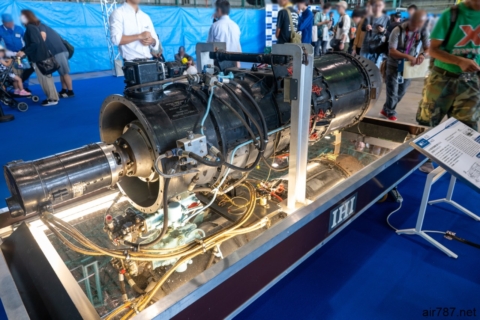 IHI のブースに展示された、日本初のジェットエンジン ネ20。
