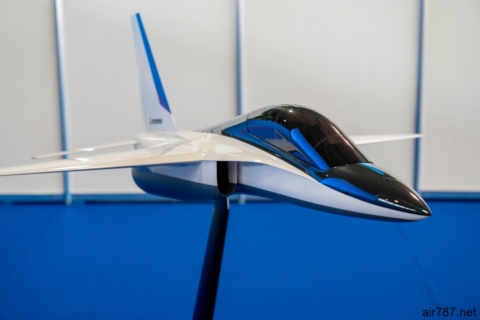 三菱重工業ブースに展示された次期練習機 T-X のコンセプト