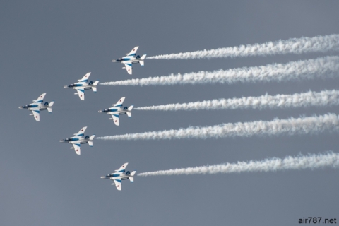 1番機 #686、2番機 #787、3番機 #697、4番機 #663、5番機 #693、6番機 #694、浜松基地で留守番の予備機が#692。松島基地でハンガーアウトしたが留守番になったのが#790。松島基地からは少し距離があるためか、全機タンク付き。