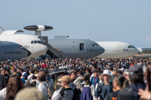 ドローンが飛来。なお、FFRS は3月で中部方面無人偵察機隊が廃止されたため展示されませんでした。
